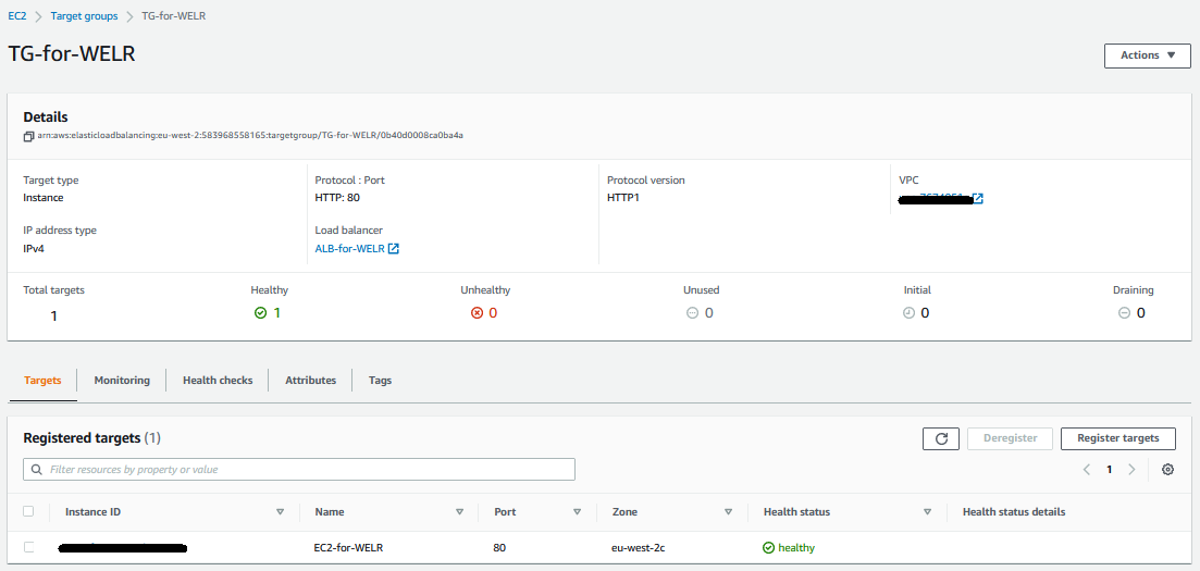 EC2-for-WELR instance-ını ehtiva edir.Əlavə olaraq bu ALB