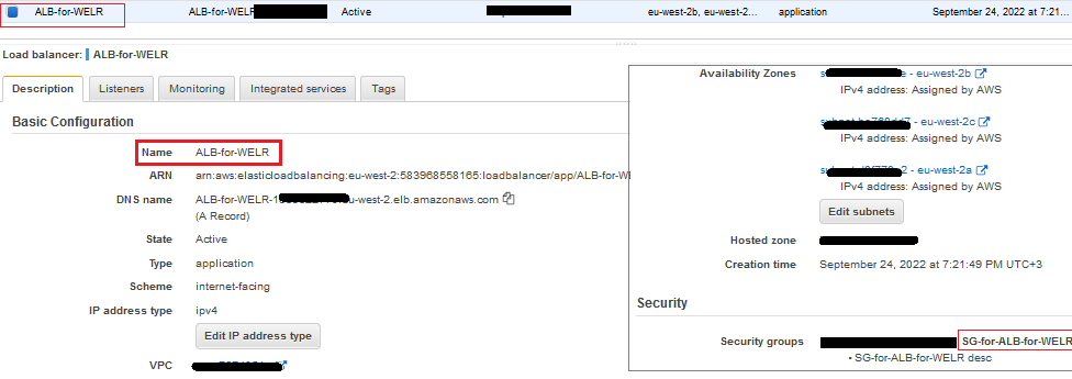 SG-for-ALB-for-WELR təhlükəsizlik qrupuna sahib olmalıdır.Şəkil-007: Application Load Balancer ALB-for-WELR