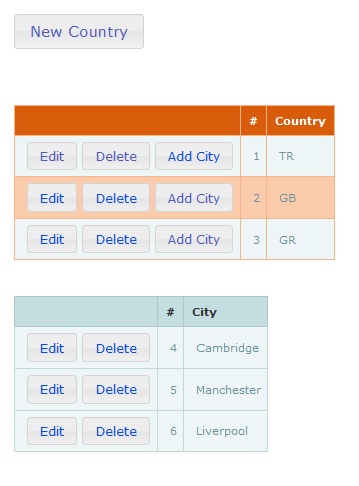 Предположим, у вас есть список в виде таблицы (фактически HTML-таблица) и отдельная кнопка "new". Каждая строка таблицы имеет кнопки "edit" и "delete", связанные с этой строкой.